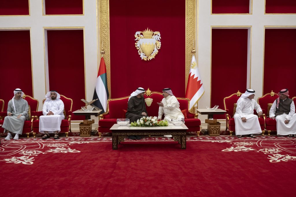 من جانبه أكد صاحب الجلالة الملك حمد بن عيسى آل خليفة..اعتزازه بعمق العلاقات الأخوية بين مملكة البحرين ودولة الإمارات العربية المتحدة والحرص على ترسيخها..مشيدا بمستوى ما وصل إليه التعاون بين البلدين وما تشهده علاقاتهما من تنسيق مستمر ورؤى إستراتيجية مشتركة تجاه تعزيز الأمن والاستقرار في المنطقة.