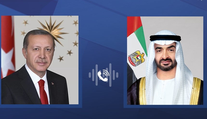تلقى صاحب السمو الشيخ محمد بن زايد آل نهيان رئيس الدولة “حفظه الله ” اليوم اتصالاً هاتفياً من رئيس الجمهورية التركية رجب طيب أردوغان، بحثا خلاله علاقات التعاون والعمل المشترك بين دولة الإمارات وتركيا في مختلف المجالات التي تخدم مصالحهما المتبادلة، إضافة إلى عددٍ من القضايا والتطورات الإقليمية والدولية التي تهم البلدين.
