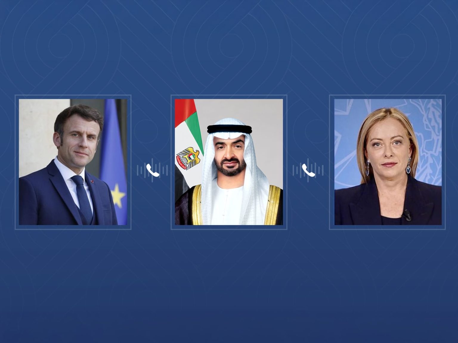 بحث صاحب السمو الشيخ محمد بن زايد آل نهيان رئيس الدولة “حفظه الله” – خلال اتصالين هاتفيين – مع إيمانويل ماكرون رئيس الجمهورية الفرنسية وجورجا ميلوني رئيسة وزراء الجمهورية الإيطالية..العلاقات الإستراتيجية وسبل تعزيزها في مختلف جوانبها بما يحقق المصالح المشتركة للجميع.