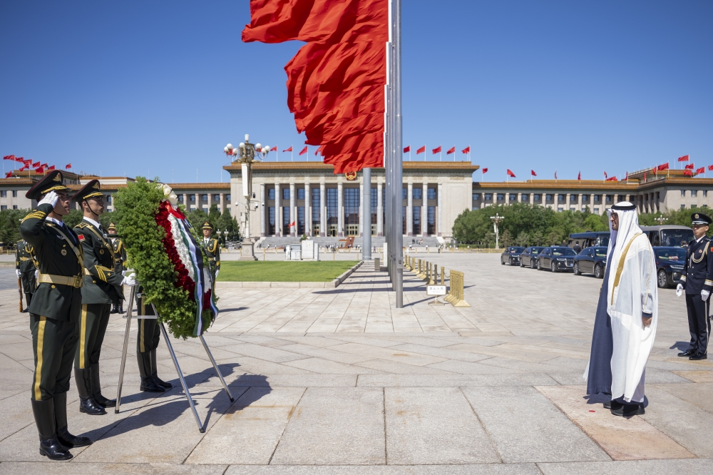 ووضع سموه إكليلاً من الزهور على النصب الذي شيد تكريماً للصينيين الذين ضحوا بأرواحهم دفاعاً عن وطنهم عبر التاريخ، معبراً عن تقديره لنجاح الشعب الصيني في مواجهة التحديات وصولاً إلى النهضة التي يعيشها خلال المرحلة الحالية .. وذلك بحضور الوفد المرافق لصاحب السمو رئيس الدولة خلال زيارة الصين.