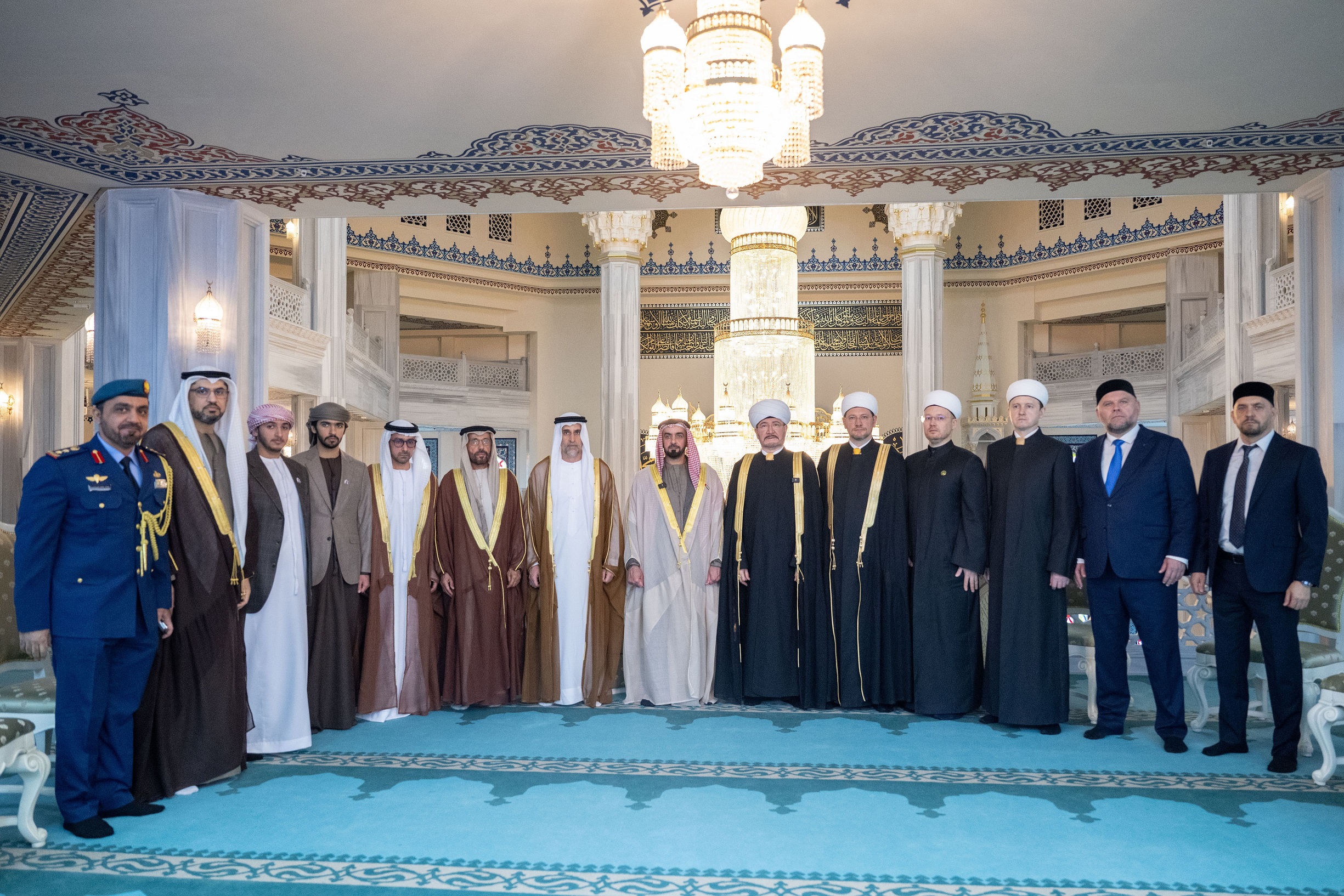 كما قام سموه بجولة في مسجد موسكو الكبير، وما يعرف أيضاً “بمسجد موسكو الجامع”، التحفة المعمارية في قلب العاصمة الروسية، ويعد الأضخم في القارة الأوروبية، حيث اطلع سموه على لمحة تاريخية عن المسجد والزخارف والنقوش التي تزين جدرانه، وما يمثله هذا المسجد والمرافق التابعة له من قيمة ودور في تعزيز التلاقي الحضاري، وتعزيز مبادئ الحوار بين الأديان ضمن الفعاليات الدينية والثقافية التي يستضيفها، ويحظى هذا الجامع بدعم دولة الإمارات العربية المتحدة منذ إعادة بنائه وافتتاحه عام 2015، بالإضافة إلى تمويل المشاريع الإنسانية والخيرية التي ينظمها.