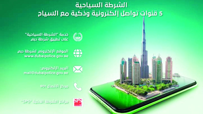 حددت القيادة العامة لشرطة دبي، ممثلة في إدارة الشرطة السياحية في الإدارة العامة للتحريات والمباحث الجنائية، خمس قنوات تواصل إلكترونية وذكية، لتعزيز التواصل مع السياح الواصلين إلى الإمارة، وذلك في إطار تحقيق توجه حكومة دبي في جعل دبي المدينة الأفضل في العالم للعيش والعمل والزيارة والاستثمار.