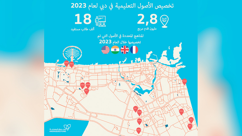 أعلنت مؤسسة صندوق المعرفة عن تخصيص أكثر من 2.8 مليون قدم مربعة من الأصول التعليمية في إمارة دبي خلال العام الماضي بنسبة زيادة بلغت 211% عن عام 2022، التي تم تخصيصها لمستثمرين ومشغلين في قطاع التعليم.