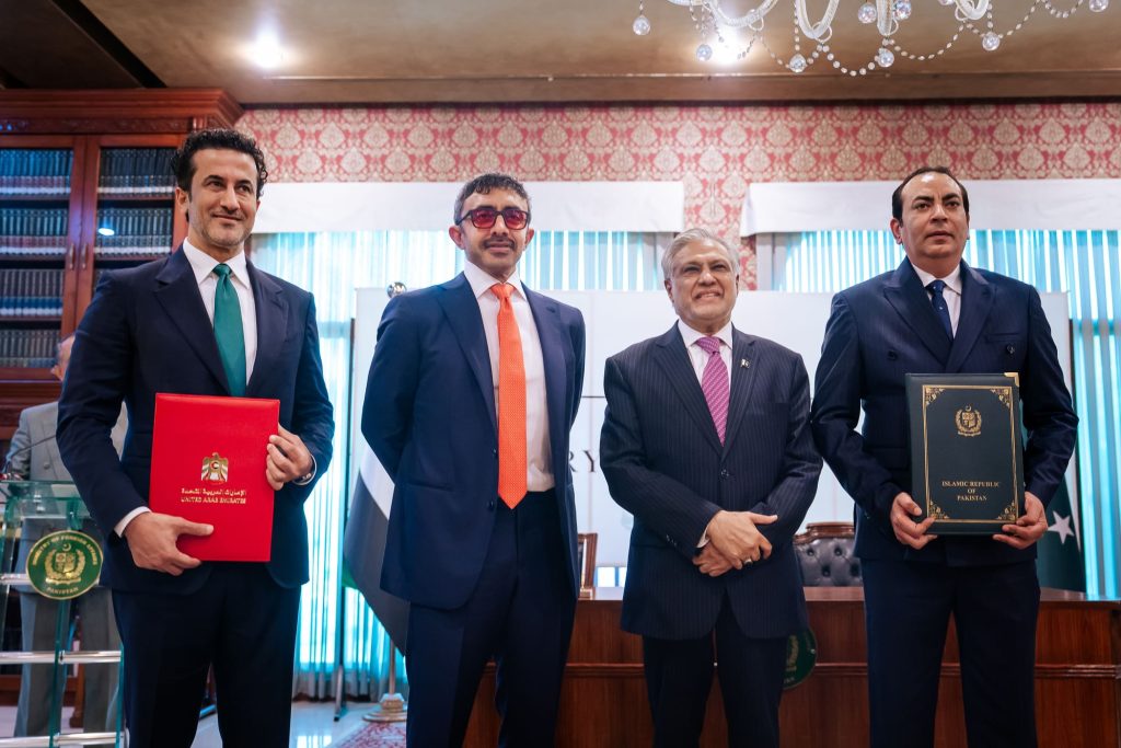 وشهد سمو الشيخ عبدالله بن زايد آل نهيان، نائب رئيس مجلس الوزراء وزير الخارجية، و محمد إسحاق دار، نائب رئيس الوزراء وزير الخارجية في جمهورية باكستان الإسلامية ، تبادل مذكرة تفاهم بشأن تأسيس مجلس الأعمال الإماراتي – الباكستاني المشترك.