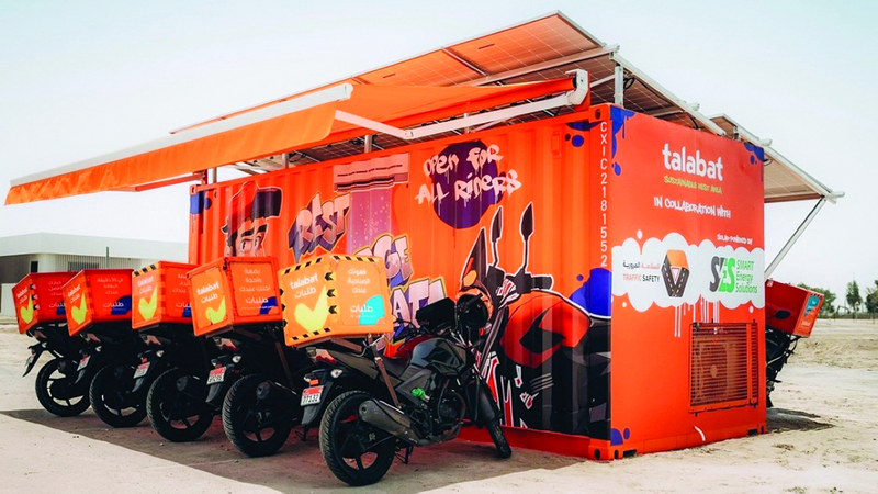 . 6000 موقع لاستراحة عمال خدمات توصيل الطلبات في مناطق مختلفة من الدولة خلال فترة «حظر العمل وقت الظهيرة».