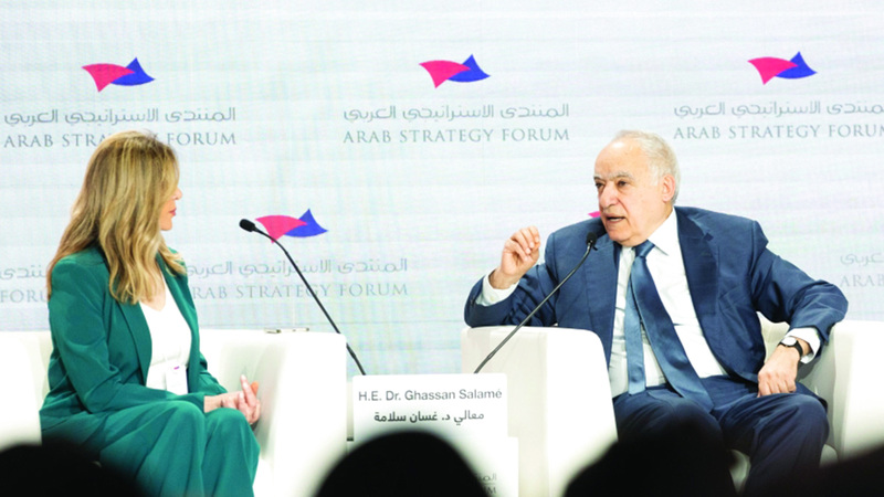 واستعرض سلامة خلال جلسة بعنوان «حالة العالم العربي سياسياً في 2024» ضمن «المنتدى الاستراتيجي العربي» في دبي، وأدارتها منتهى الرمحي الإعلامية في قناة «العربية»، الأوضاع الراهنة في العالم العربي وتوقعاته للمرحلة المقبلة.