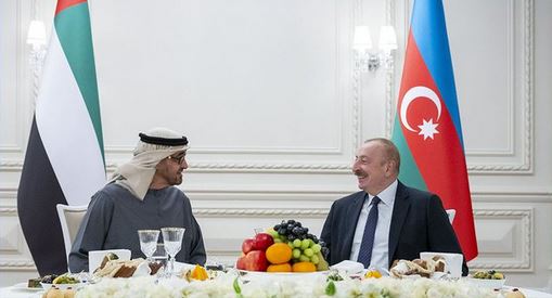 حضر صاحب السمو الشيخ محمد بن زايد آل نهيان رئيس الدولة “حفظه الله” اليوم – مأدبة العشاء التي أقامها فخامة إلهام علييف رئيس جمهورية أذربيجان تكريماً لسموه والوفد المرافق .. وذلك في إطار الزيارة الرسمية التي يقوم بها سموه إلى أذربيجان.