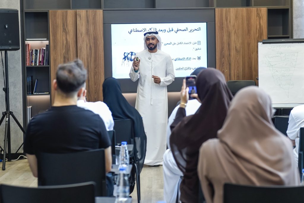 وفي إطار تمكين الطلبة والخريجين من مهارات الذكاء الاصطناعي، خصص برنامج “الاتصال للطلبة، ورشة «صناعة المحتوى الإعلامي الأكثر تخصصاً بالاعتماد على تقنيات الذكاء الاصطناعي وأدوات الذكاء الاصطناعي التوليدي وصولاً للجمهور» للدكتور محمد عبد الظاهر، عضو اللجنة الأكاديمية للمكتب الإعلامي لحكومة الشارقة، مع جانب تطبيقي قدّمه المدرّب عبد الرحمن آل علي من «المكتب الإعلامي لحكومة الشارقة». وتلتها ورشة «أسس التغطية الإعلامية للفعاليات الحكومية» للدكتورة شيرين موسى، عضو اللجنة الأكاديمية، حيث قدّمت المدربة سمية عارف خطوات التنفيذ وفق أفضل الممارسات المهنية. وأعقب ذلك ورشة «تحليل أداء وسائل التواصل الاجتماعي باستخدام تقنيات الذكاء الاصطناعي» قدّمها الدكتور السيد بخيت، مع تطبيقات عملية قدّمها المدرّب إسماعيل البلوشي.