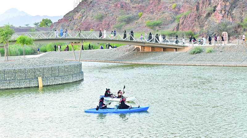 وأشار إلى أن مشروعة يعد منبراً مثالياً لاكتشاف الجمال الطبيعي الخلاب، إذ يمكن للعائلات والأطفال والكبار الاستمتاع بتفاصيل هذه المدينة الرائعة، من خلال تفاعلهم مع تجربة «كاياك فلو». ويشكل هذا المشروع فرصة حقيقية لتعزيز روح المغامرة والتواصل مع الطبيعة بعيداً عن صخب المدن. ولفت إلى أنه حرص من خلال مشروعه على تمكين زائري المدينة من الغوص في جمالياتها، حيث يمكنهم استكشاف معالم الطبيعة والتفاعل معها بطريقة مختلفة عن تجاربهم السابقة بقوارب التجديف، من خلال رحلات في البحيرة واستكشاف الأماكن المحيطة بها. وبسؤاله عن اختياره لموقع المشروع، أجاب الكعبي بأن اختياره وقع على بحيرة ليم التي يتوافد إليها سكان حتا وزوارها بكثافة، حيث يقضّون أجمل الأوقات في أحضان الطبيعة. وتعكس الجبال المحيطة بالبحيرة هوية المدينة، منوهاً بأن البحيرة تتميز بقربها من مسطحات زراعية ومناطق مخصصة لقضاء العائلات أفضل أوقاتها خلال عطلة نهاية الأسبوع، وفي المناسبات والأعياد، وعلى ضفافها مناطق استراحة لمحبي الشواء في الهواء الطلق، إذ تتزين البحيرة بجسور معلقة تتيح لزائريها التمتع بمناظر خلابة، إضافة إلى أن الموقع يوفر فرصاً لممارسة هوايات متنوعة.