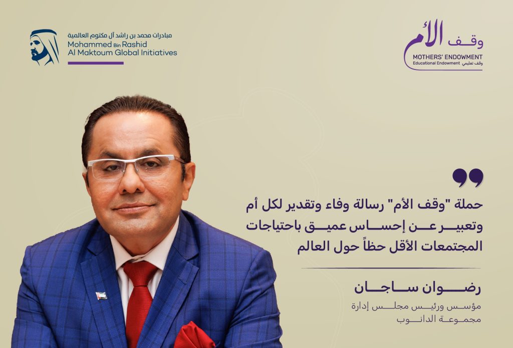 وقال رضوان ساجان مؤسس ورئيس مجلس إدارة مجموعة الدانوب: “(وقف الأم) مبادرة مباركة جديدة من قبل صاحب السمو الشيخ محمد بن راشد آل مكتوم، خلال شهر رمضان الفضيل، وتحمل هذه الحملة رسالة وفاء وتقدير للأم، كما تعبر عن إحساس عميق باحتياجات المجتمعات الأقل حظاً حول العالم، حيث تواجه تلك المجتمعات تحديات كبيرة في تمكين أبنائها من الحصول على فرص كافية للتعليم“.