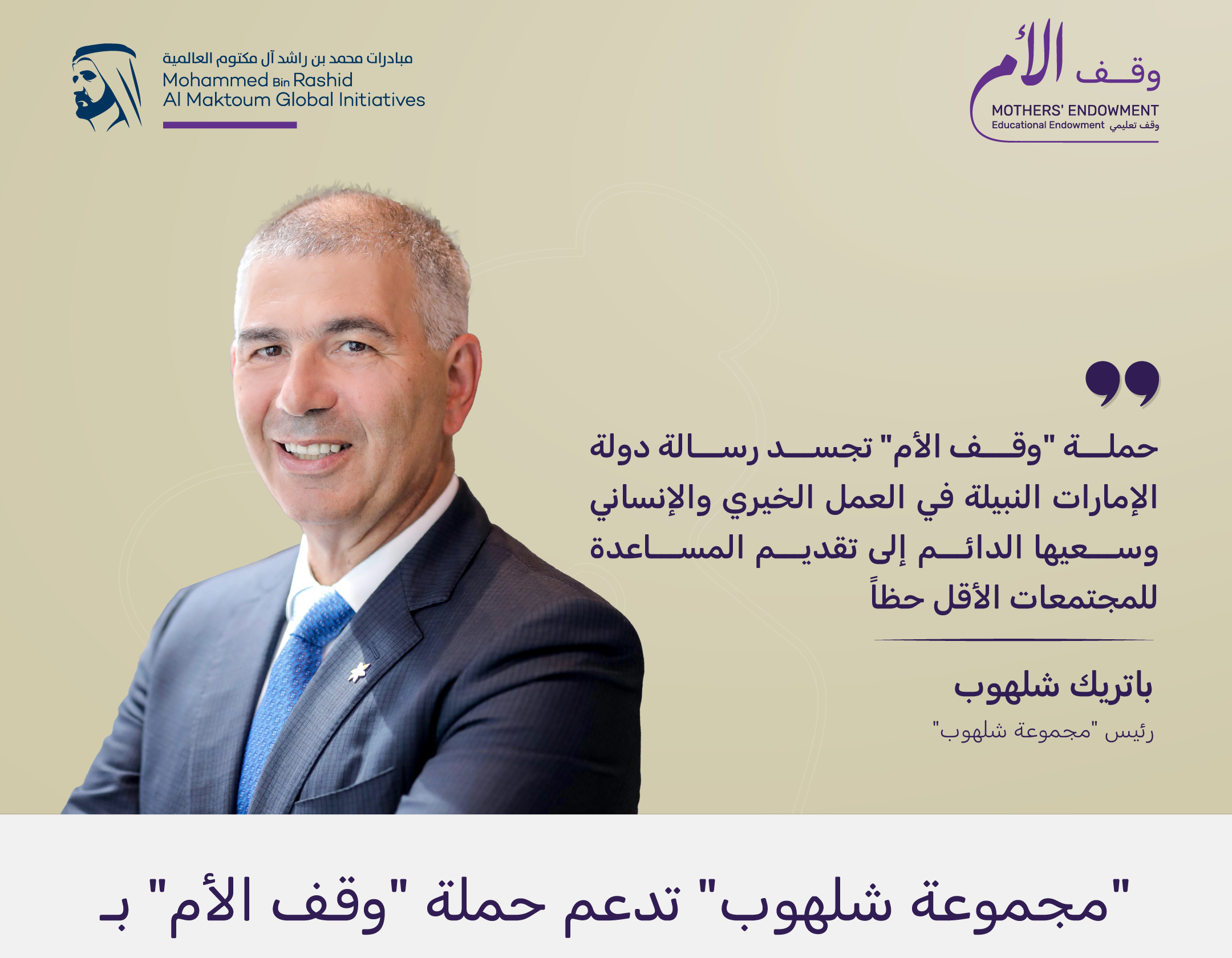وقال باتريك شلهوب، رئيس “مجموعة شلهوب” إن حملة “وقف الأم” تجسد رسالة دولة الإمارات النبيلة في العمل الخيري والإنساني، وسعيها الدائم إلى تقديم المساعدة للمجتمعات الأقل حظاً، وتغيير حياة عشرات ملايين البشر كل عام نحو الأفضل، وتمكينهم من امتلاك المعارف والأدوات الضرورية للمشاركة في تنمية بلدانهم ومجتمعاتهم وزيادة ثقتهم بالمستقبل.