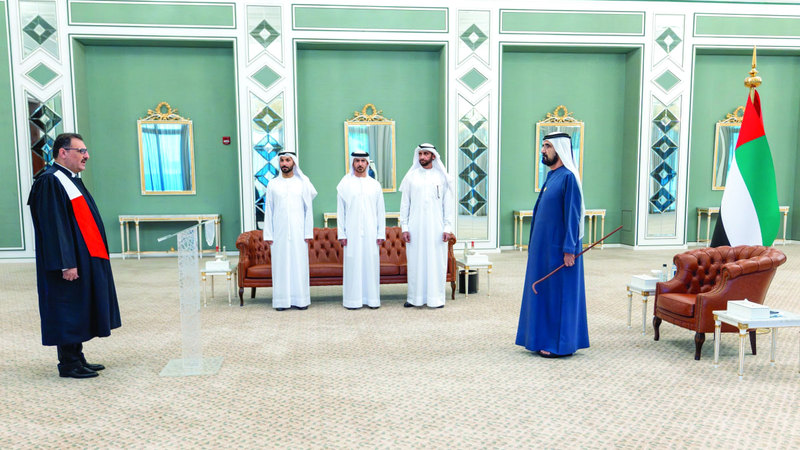 أمام صاحب السمو الشيخ محمد بن راشد آل مكتوم، نائب رئيس الدولة رئيس مجلس الوزراء حاكم دبي، رعاه الله، أدى 35 من القضاة الجدد في محاكم دبي اليمين القانونية، وذلك في مجلس «المضيف» بدار الاتحاد في دبي.