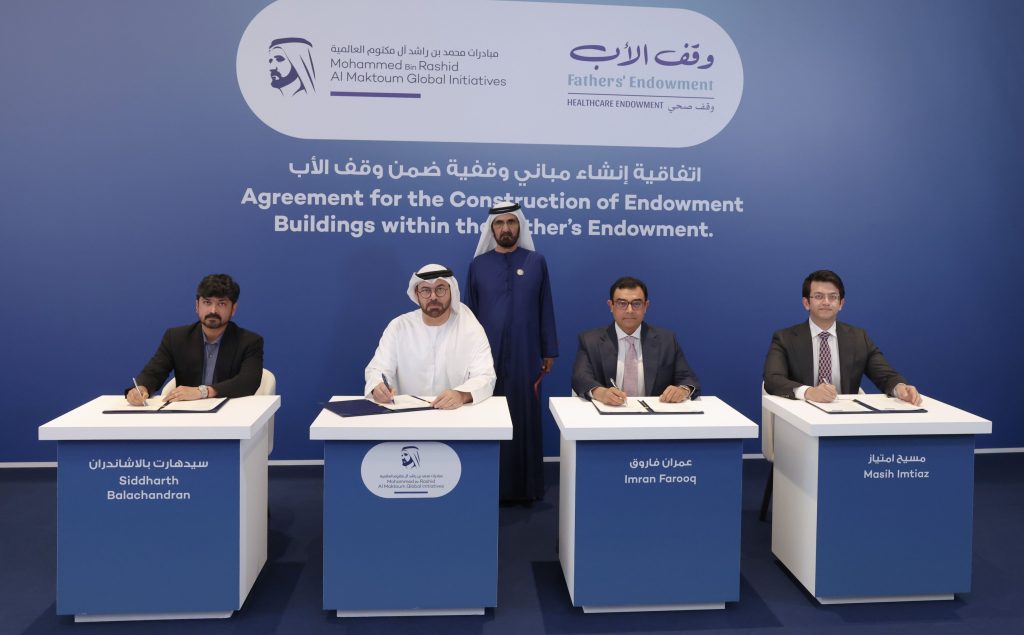 شهد صاحب السمو الشيخ محمد بن راشد آل مكتوم، نائب رئيس الدولة، رئيس مجلس الوزراء، حاكم دبي، رعاه الله، توقيع اتفاقيات بين “مبادرات محمد بن راشد آل مكتوم العالمية” وشركات “امتياز” و”سمانا” و”بيوميرك” لإنشاء 3 مبان وقفية دعماً لحملة “وقف الأب”.