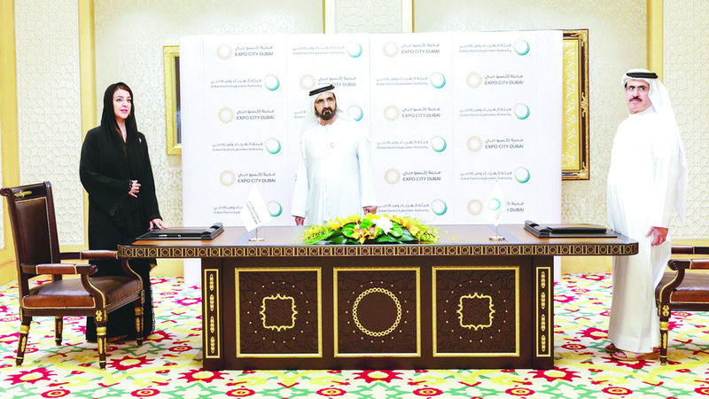 شهد صاحب السموّ الشيخ محمد بن راشد آل مكتوم، نائب رئيس الدولة رئيس مجلس الوزراء حاكم دبي، رعاه الله، بحضور سموّ الشيخ حمدان بن محمد بن راشد آل مكتوم، ولي عهد دبي رئيس المجلس التنفيذي لإمارة دبي، توقيع اتفاقية تعاون بين مدينة إكسبو دبي وهيئة كهرباء ومياه دبي، أمس، لتزويد مدينة إكسبو دبي بالكامل بالكهرباء المولدة من الطاقة المتجددة، ضمن رحلتها نحو الحياد المناخي بحلول عام 2050.