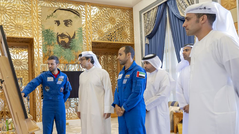واطلع سموه من الوفد على مشروعات دولة الإمارات المستقبلية في قطاع الفضاء، وخطط المركز خلال المرحلة المقبلة، إلى جانب «برنامج الإمارات لرواد الفضاء» الذي يستهدف تطوير فريق وطني من رواد الفضاء، للمشاركة في رحلات الاستكشاف المأهولة، وغيرها من البرامج.
