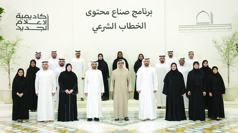 شهد سموّ الشيخ منصور بن زايد آل نهيان، نائب رئيس الدولة نائب رئيس مجلس الوزراء رئيس ديوان الرئاسة، أمس، تخريج منتسبي «برنامج صنّاع محتوى الخطاب الشرعي» الذي نظمته الهيئة العامة للشؤون الإسلامية والأوقاف والزكاة، بالتعاون مع أكاديمية الإعلام الجديد في دبي.