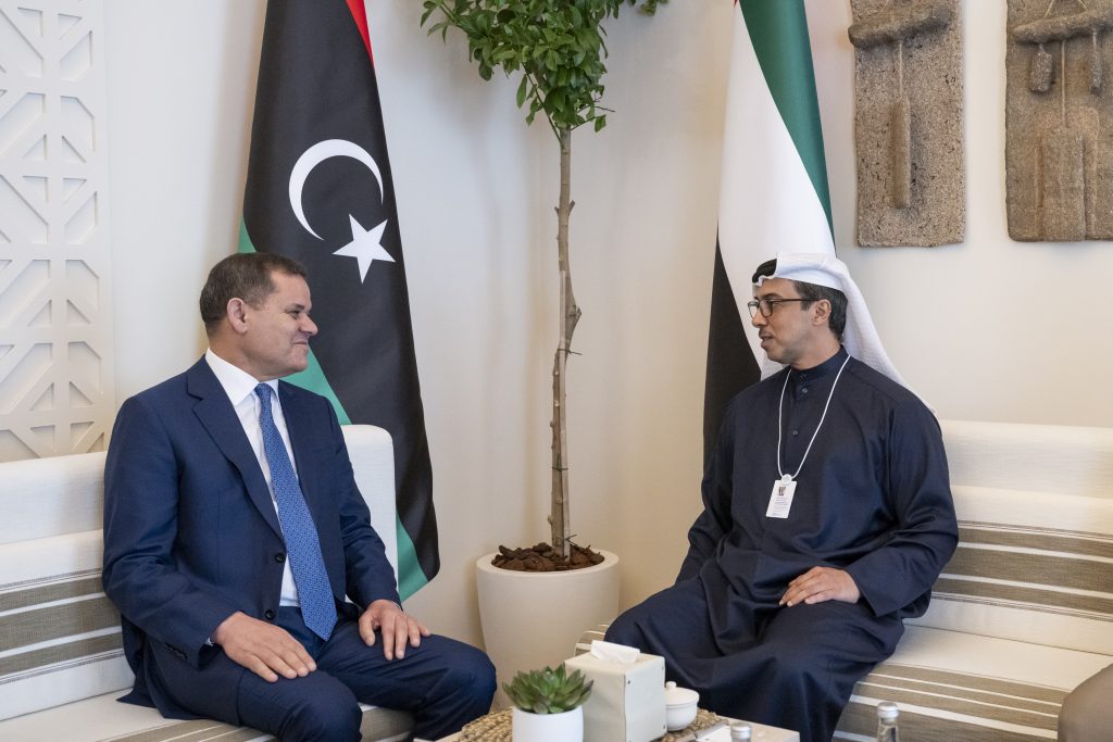 وبحث سموه ورئيس حكومة الوحدة الوطنية ــ خلال اللقاء الذي جرى على هامش أعمال القمة العالمية للحكومات ــ علاقات التعاون بين دولة الإمارات وليبيا في مختلف المجالات الاقتصادية والتنموية وفرص تطويرها بما يسهم في تحقيق تطلعات شعبي البلدين إلى التنمية والازدهار.