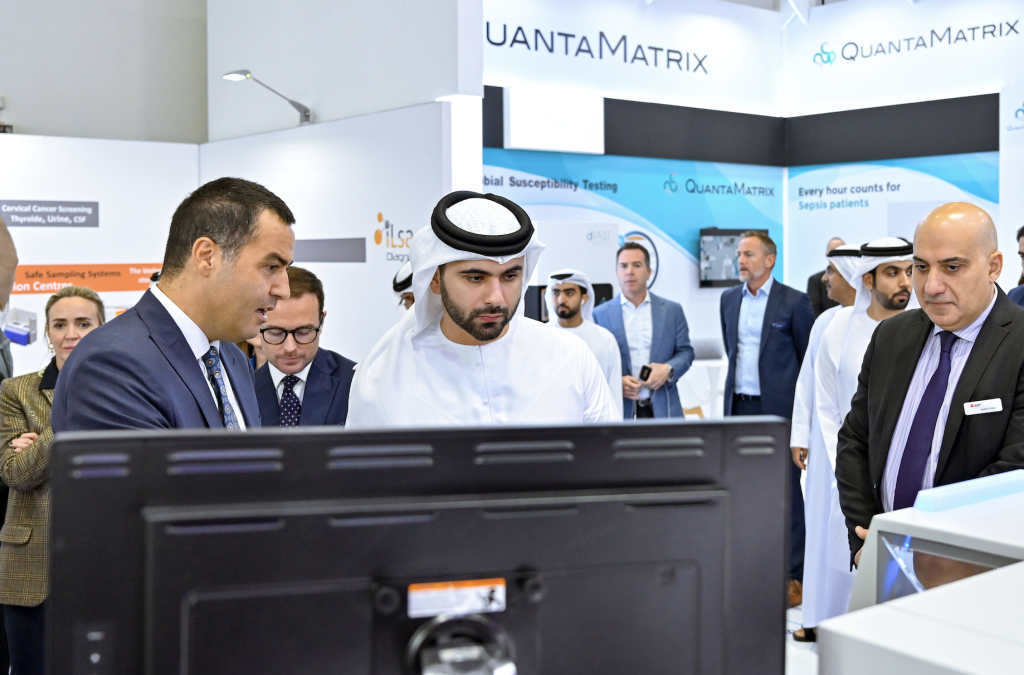 وحرص سمو الشيخ منصور بن محمد بن راشد آل مكتوم على زيارة جناح شركة “بابيروس”، وهي إحدى الشركات الرائدة في مجال توريد المعدات الطبية في دولة الإمارات، وتساعد في تقديم الحلول التشخيصية المبتكرة في ثلاثة مجالات رئيسية: التشخيص الجزيئي، والطب الشخصي، والتشخيص المناعي. وشملت جولة سموه زيارة شركة “سيسمكس، المتخصصة في تكنولوجيا الرعاية الصحية والرائدة عالميا في مجال تشخيص وخدمات أمراض الدم، والتي تعتبر من بين أفضل شركات التشخيص عالمياً ضمن ثمانية مجالات هي: أمراض الدم، وعلوم الحياة، وتحليل البول، والرعاية الأولية، وتخثر الدم والكيمياء المناعية، والرعاية الصحية الأساسية، وقياس التدفق الخلوي.