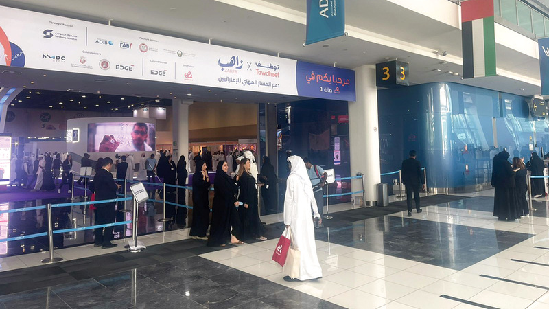 وشهد المعرض التوظيفي، الذي يختتم أعماله اليوم، إقبالاً متواصلاً من شباب المواطنين الباحثين عن فرص وظيفية لدى شركات ومؤسسات القطاعين شبه الحكومي والخاص، التي حرص عدد منها على توفير منصات لإجراء مقابلات عمل فورية مع الكوادر المواطنة التي يتم فرز سيرها الذاتية إلكترونياً.