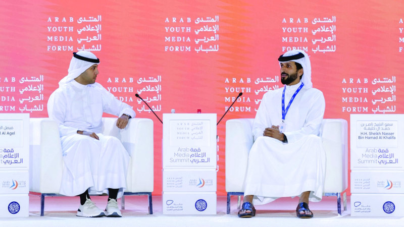وقال سموه خلال حديثه أمام أكبر تجمع إعلامي عربي للشباب: «الشباب يمثل نصف الحاضر وكل المستقبل، وأن دولنا العربية دول شابة يصل تعداد الشباب فيها إلى 60% من سكانها، وأن دورهم في الماضي كان مقتصراً على حضور الفعاليات لكن دورهم سرعان ما تغير مع إيمان الدول بقدرتهم على صنع الفارق وتحمل المسؤولية، مشيراً سموه إلى النماذج الناجحة التي قدمت تجارب ملهمة ضمن قطاعات الإعلام والاستثمار والاقتصاد، وحرص الدول على الاستثمار في الشباب، وفتح المجال أمامهم من خلال رسم السياسات والاستراتيجيات التي تؤمن لهم الوجود الحقيقي في موقع المسؤولية، باعتبارهم الثروة الحقيقية للأمم».