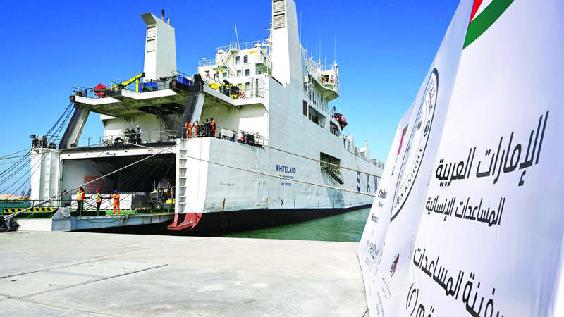 طناً من المواد الإنسانية تحملها سفينة المساعدات الإماراتية الثانية.
