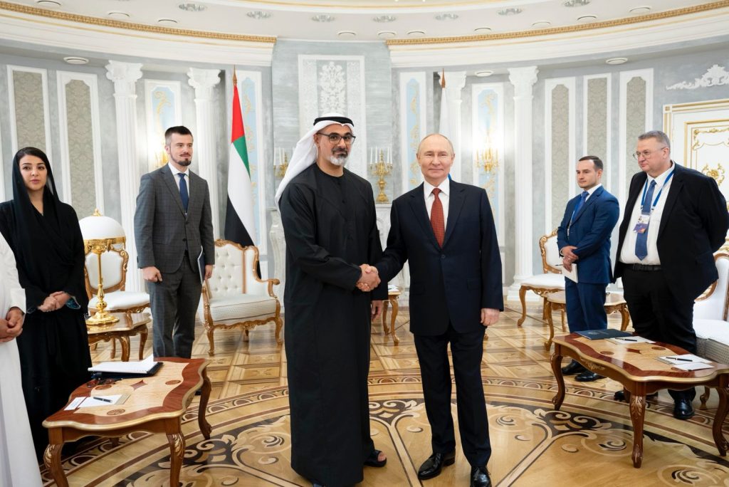 وفي مستهل اللقاء، نقل سموّه، تحيات صاحب السمو الشيخ محمد بن زايد آل نهيان، رئيس الدولة “حفظه الله”، إلى الرئيس فلاديمير بوتين، وتمنياته لفخامته بموفور الصحة والعافية ولروسيا الاتحادية وشعبها الصديق دوام الرخاء والرفعة والرقي.