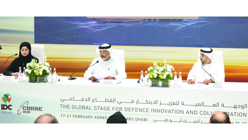 ماجد أحمد الجابري، ومحمد سيف الزعابي، ومهرة بلال الظاهري، في معرضَي «آيدكس» و«نافدكس» 2025، اللذين ينعقدان تحت رعاية صاحب السمو الشيخ محمد بن زايد آل نهيان، رئيس الدولة، حفظه الله، وبتنظيم من مجموعة أدنيك، بالتعاون مع وزارة الدفاع ومجلس التوازن.